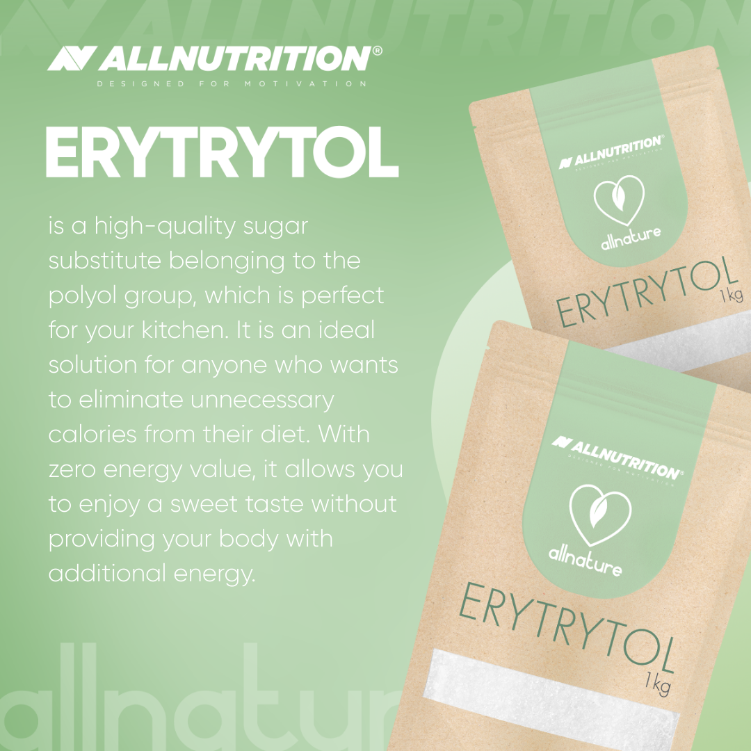 ALLNATURE ERYTRITOL is a high-quality sugar substitute belonging to the group of polyols, perfectly suited for your kitchen. It is an ideal solution for anyone who wants to eliminate unnecessary calories from their diet. Thanks to its zero energy value, it allows you to enjoy a sweet taste without providing additional energy to the body.