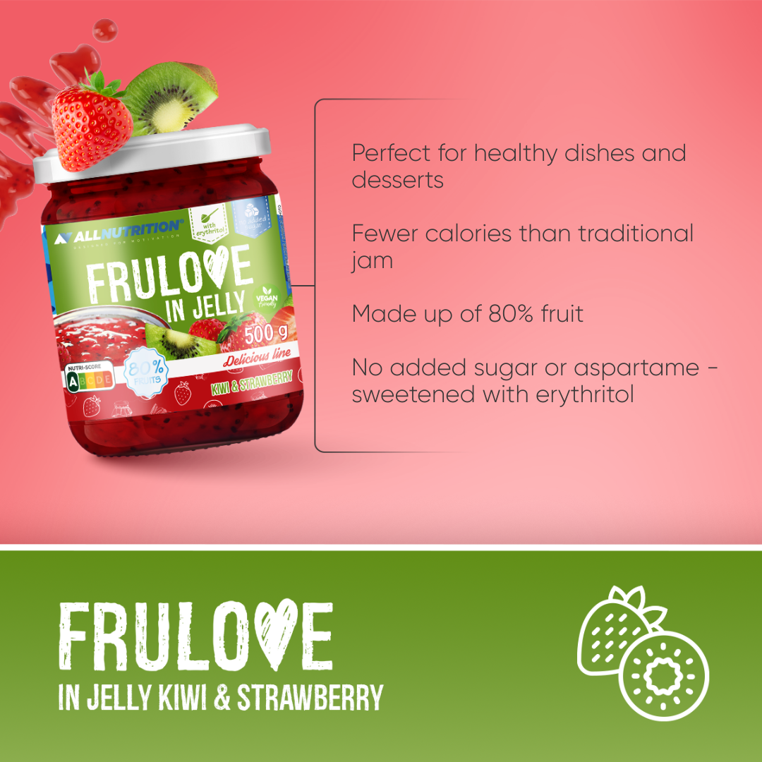 kiwi (40%), strawberries (40%), water, sweeteners: erythritol, modified starch, flavouring, stabilising agent: calcium chloride, acidity regulator: citric acid, preservative agents: potassium sorbate, sweetener: sucralose.