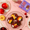 wheat flour, cocoa topping (20.5%) (sweetener: maltitols, vegetable oils and fats (palm), low-fat cocoa powder, cocoa mass, emulsifier: lecithins [from soy], natural vanilla flavour), sweeteners: maltitol, vegetable oils and fats (palm and rapeseed), eggs, soy flour, fructooligosaccharides, modified corn starch, stabilizer: glycerol, vanilla aroma, salt, emulsifier: lecithins [fromsoy], raising agents: diphosphates, sodium carbonates, calcium phosphates, preservative agents: potassium sorbate, lemon juice, carob protein, carob fiber