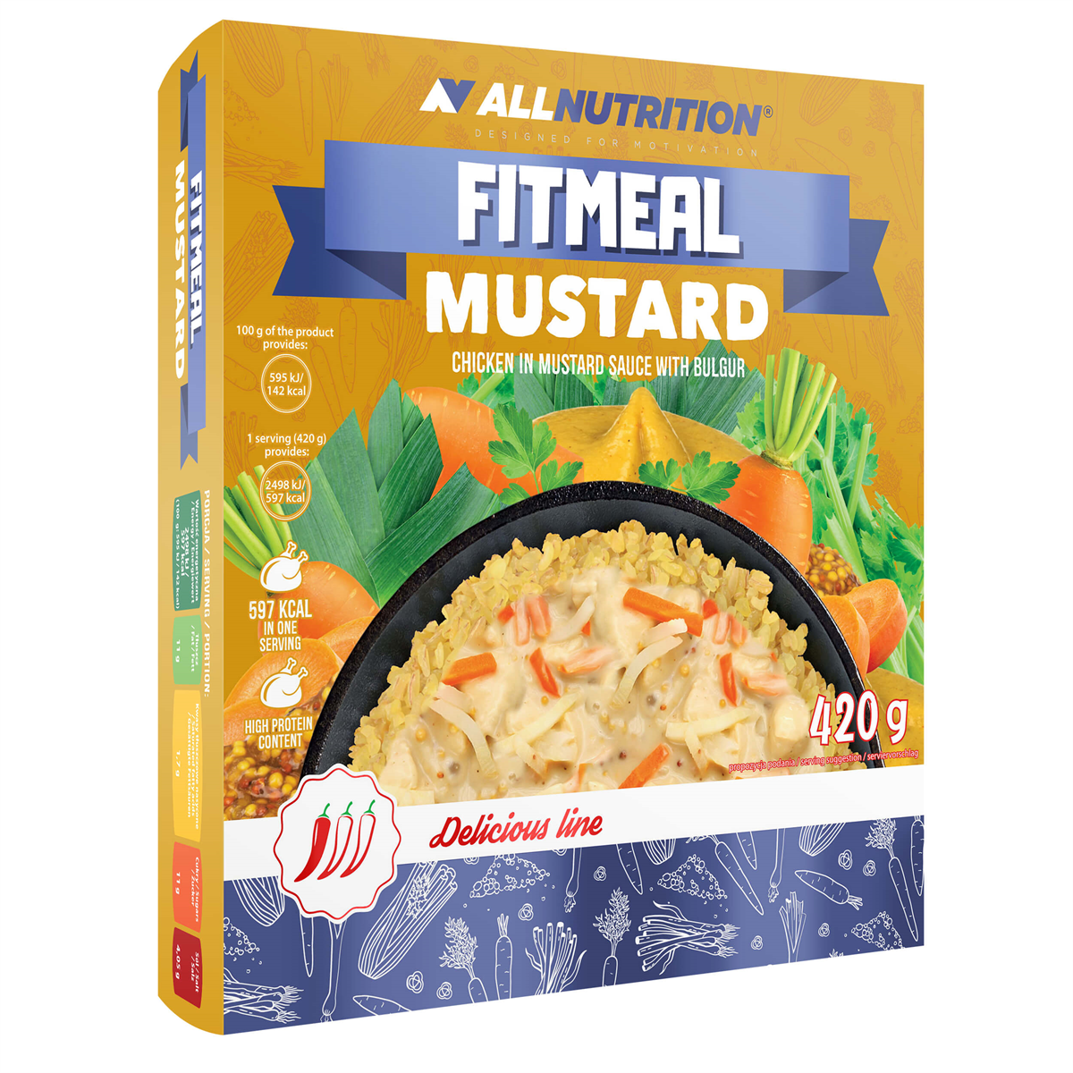 ALLNUTRITION FITMEAL MUSTARD - chicken in mustard sauce with barley groats and carrots is a delicious dish to satisfy the most demanding of palates. It combines top-quality poultry with juicy carrots and barley groats, all complemented by a delicious mustard sauce. This nutritious meal is low in fat and sugars, giving you convenient control over your calorie intake.