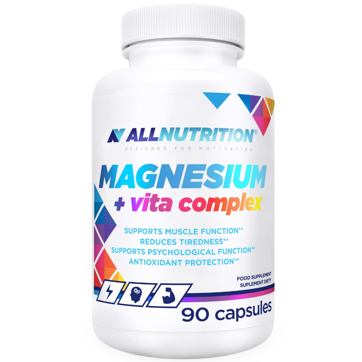 ALLNUTRITION MAGNESIUM + VITA COMPLEX is a food supplement in capsule form, providing magnesium in the form of magnesium citrate, enriched with a broad complex of B-group vitamins, vitamin C and vitamin E. The convenient capsule form makes it easy to supplement your daily diet with 11 active ingredients.