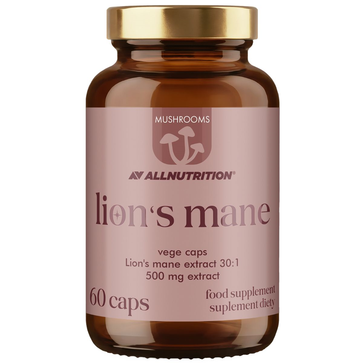 ALLNUTRITION MUSHROOMS LION'S MANE is a food supplement in the form of vegan capsules, providing an extract from the fruiting bodies of Lion's Mane mushroom (Hericium erinaceus). The product belongs to the special MUSHROOMS line and has been created for people who want to enrich their diet with concentrated mushroom extracts. One package provides two months of regular use.
