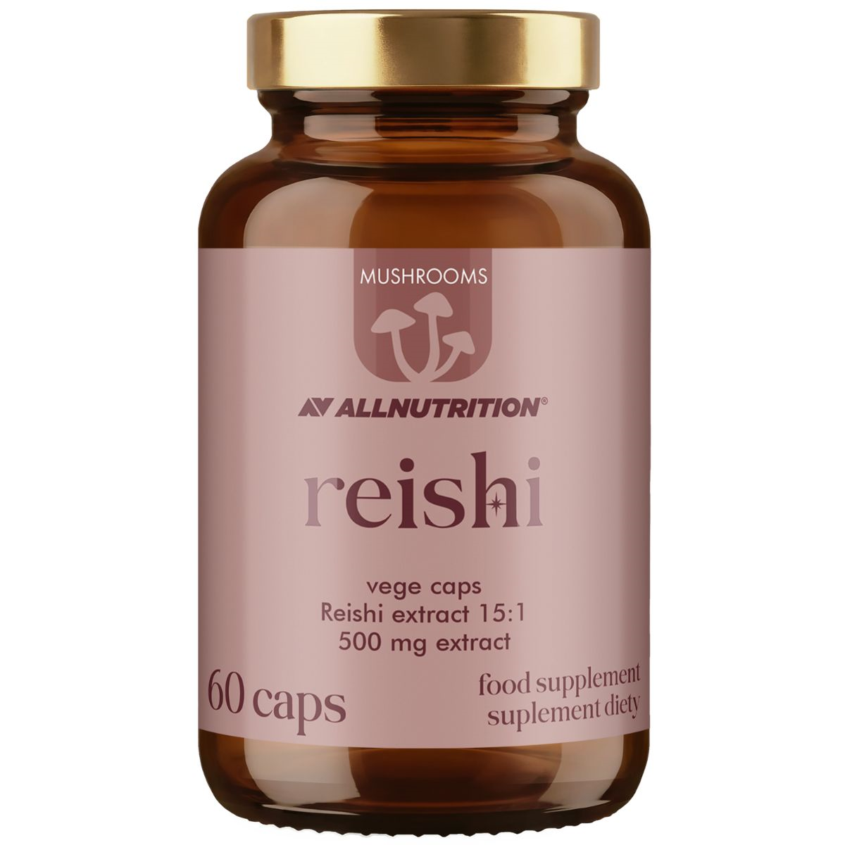 ALLNUTRITION MUSHROOMS REISHI is a food supplement in the form of vegan capsules, providing extract from the fruiting bodies of Reishi (Ganoderma lucidum). The product belongs to the specialised MUSHROOMS line and has been created for individuals who want to enrich their diet with concentrated mushroom extracts. One package provides two months of regular use.