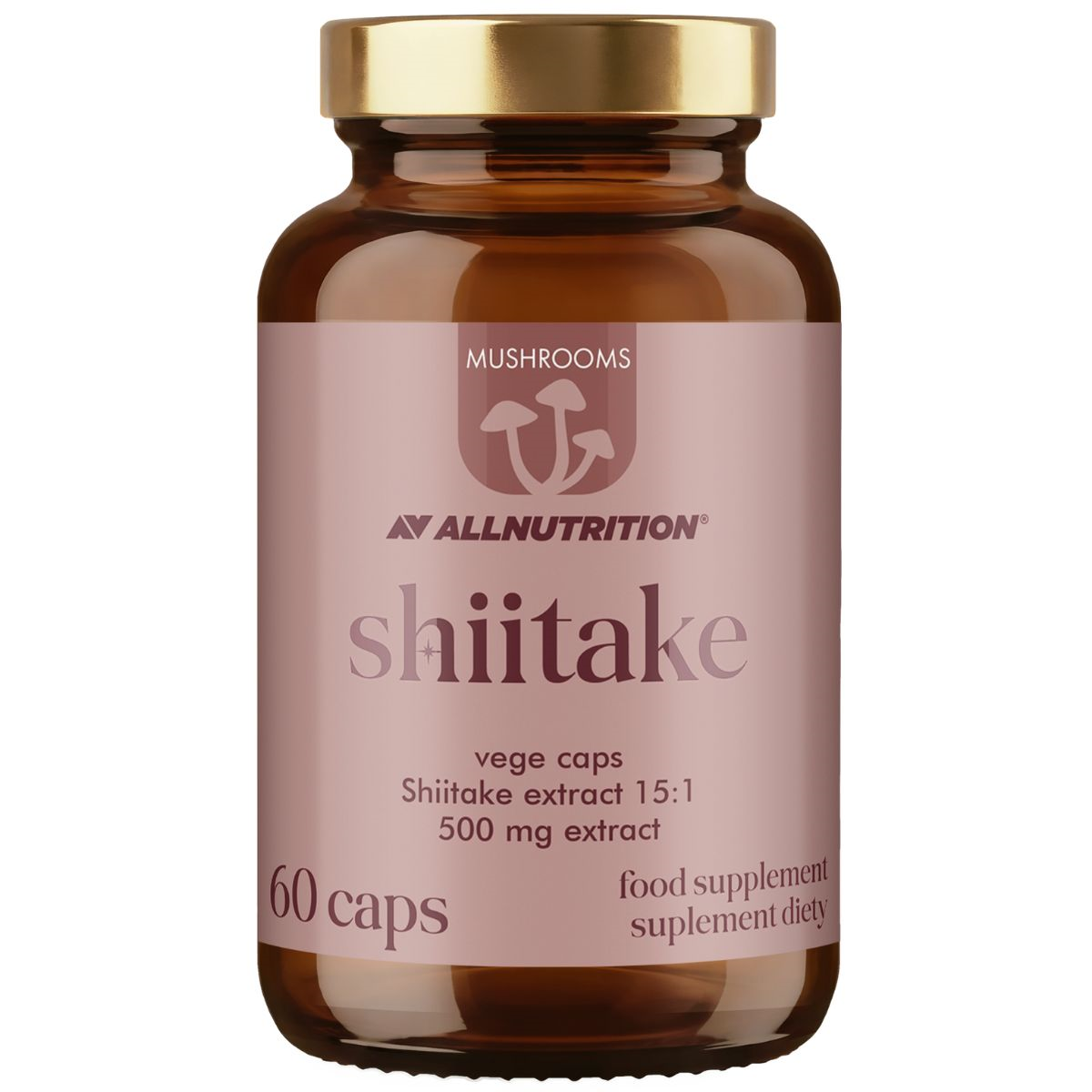 ALLNUTRITION MUSHROOMS SHIITAKE is a food supplement in the form of vegan capsules, providing extract from the fruiting bodies of the edible Shiitake mushroom (Lentinula edodes). The product belongs to the special MUSHROOMS line and was created for people who want to enrich their diet with concentrated mushroom extracts. One pack provides two months of regular use.