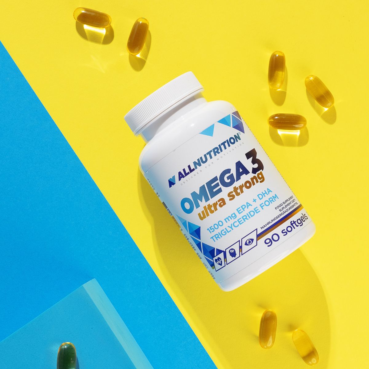 ALLNUTRITION OMEGA 3 ULTRA STRONG is a food supplement in softgel capsule form, providing a concentrated source of omega-3 fatty acids (EPA and DHA) and vitamin E. It is designed for active individuals and anyone who cares about their health, wishing to easily enrich their diet with these key nutrients.