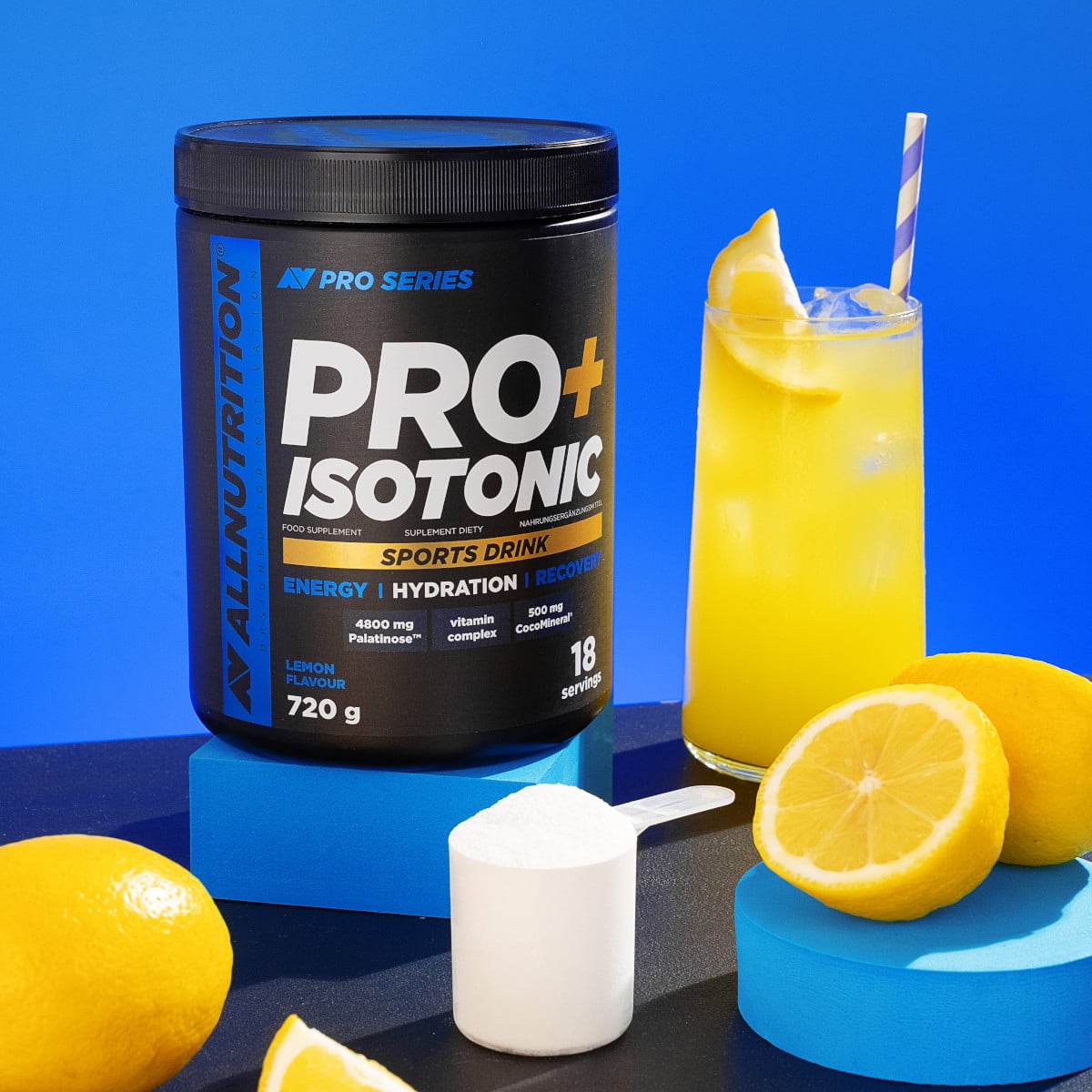 ALLNUTRITION PRO+ ISOTONIC is a powdered isotonic drink. It is based on high-quality, branded ingredients Palatinose™, Cocomineral®, and Aquamin® . Enriched with essential vitamins and minerals, it comprehensively supports physical activity. Additionally, it serves as a source of carbohydrates to help maintain energy levels.