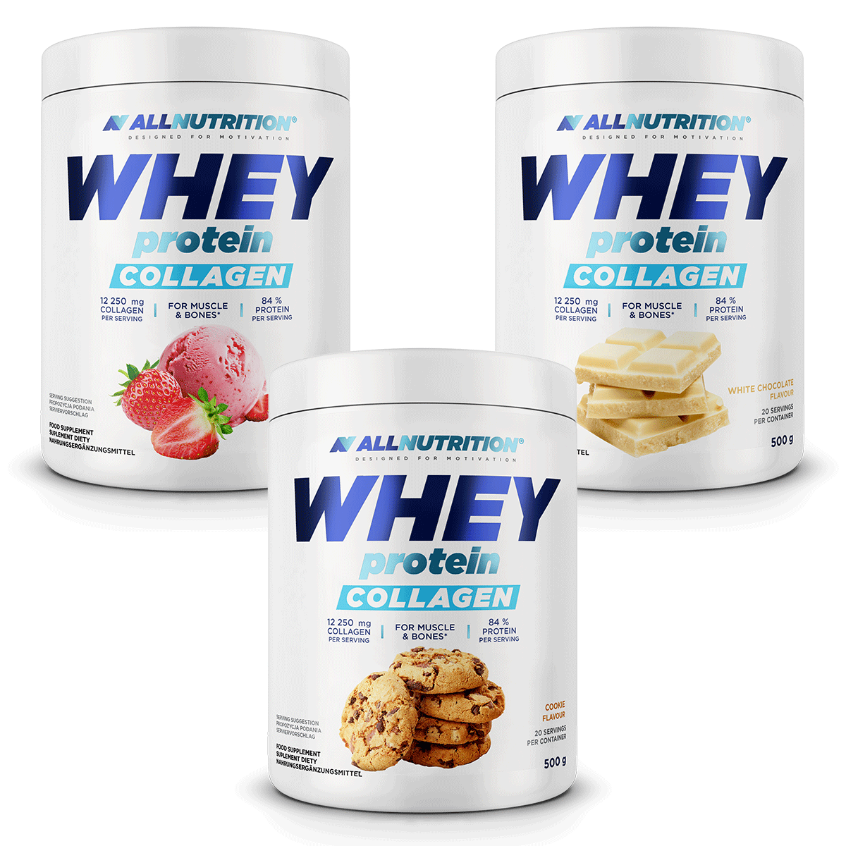 ALLNUTRITION WHEY PROTEIN COLLAGEN is a bestselling WPC whey protein supplement in a new edition – enriched with bovine collagen peptides. It not only supports the building of bigger, stronger muscles, but also contributes to comprehensive body regeneration and healthy bones.