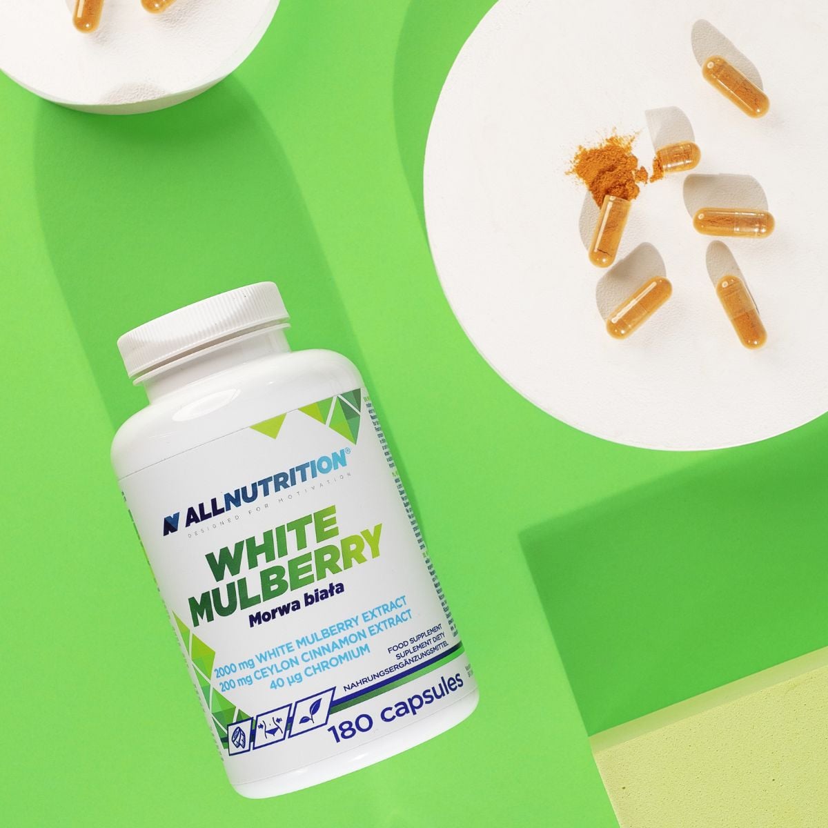 morus alba white mulberry leaf extract, capsule shell (gelatin, water, colouring agent: titanium dioxide), bulking agent: calcium phosphates, cinnamomum zeylanicum bark extract, anti-caking agents: magnesium salts of fatty acids, silicon dioxide, chromium picolinate