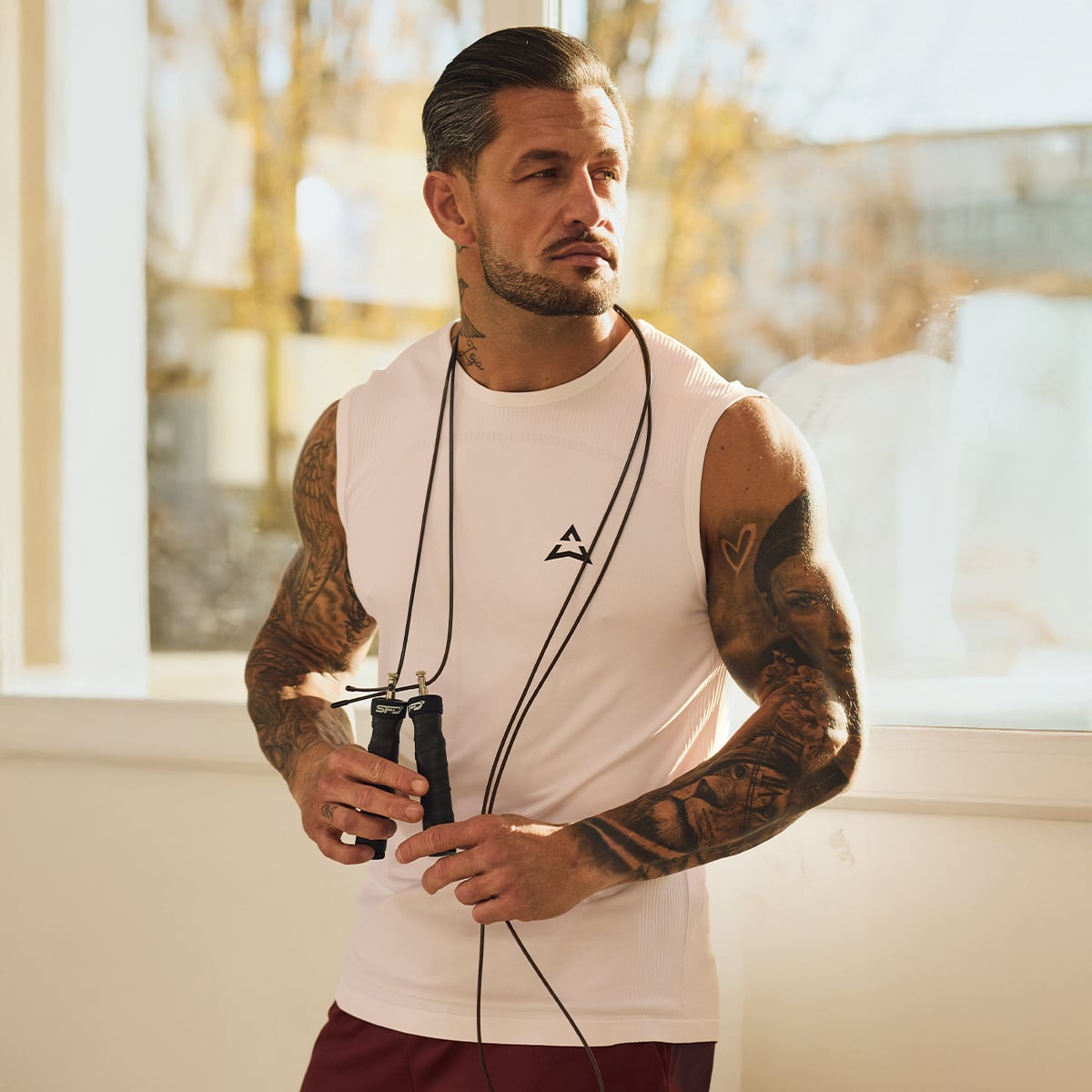The cut of the tank top is designed to highlight the shoulders and physique, giving you a strong, athletic look. At the same time, it remains a practical and versatile wardrobe essential suitable for any situation. The comfortable, perfectly balanced neckline ensures a great appearance without restricting movement.