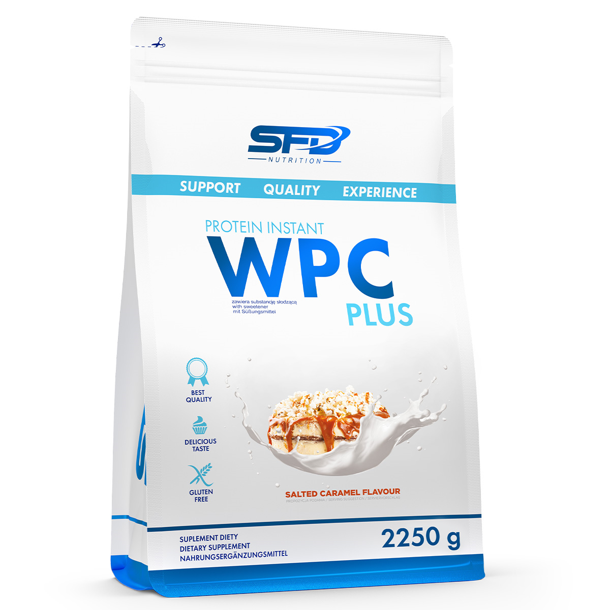 SFD WPC PROTEIN PLUS Whey protein concentrate (WPC) powder, which provides as much as 22 g of wholesome protein in one serving! It is an excellent choice for active people, athletes and anyone who cares about a healthy and balanced diet.