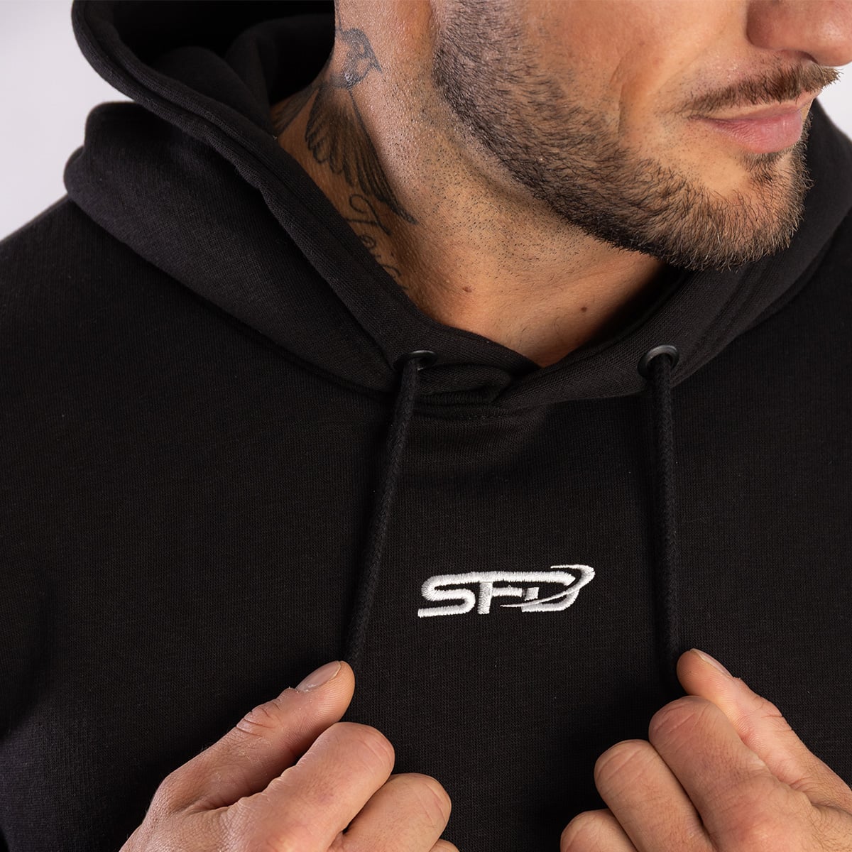 SFD UNISEX HOODIE BLACK is not just a hoodie you put on during cooler evenings. It reflects your style and brings a completely new quality to your wardrobe. Our company’s goal is: to unite, not divide – which is why our product combines elements of high-quality streetwear, perfectly fitting into the world of physical activity and sporting spirit.